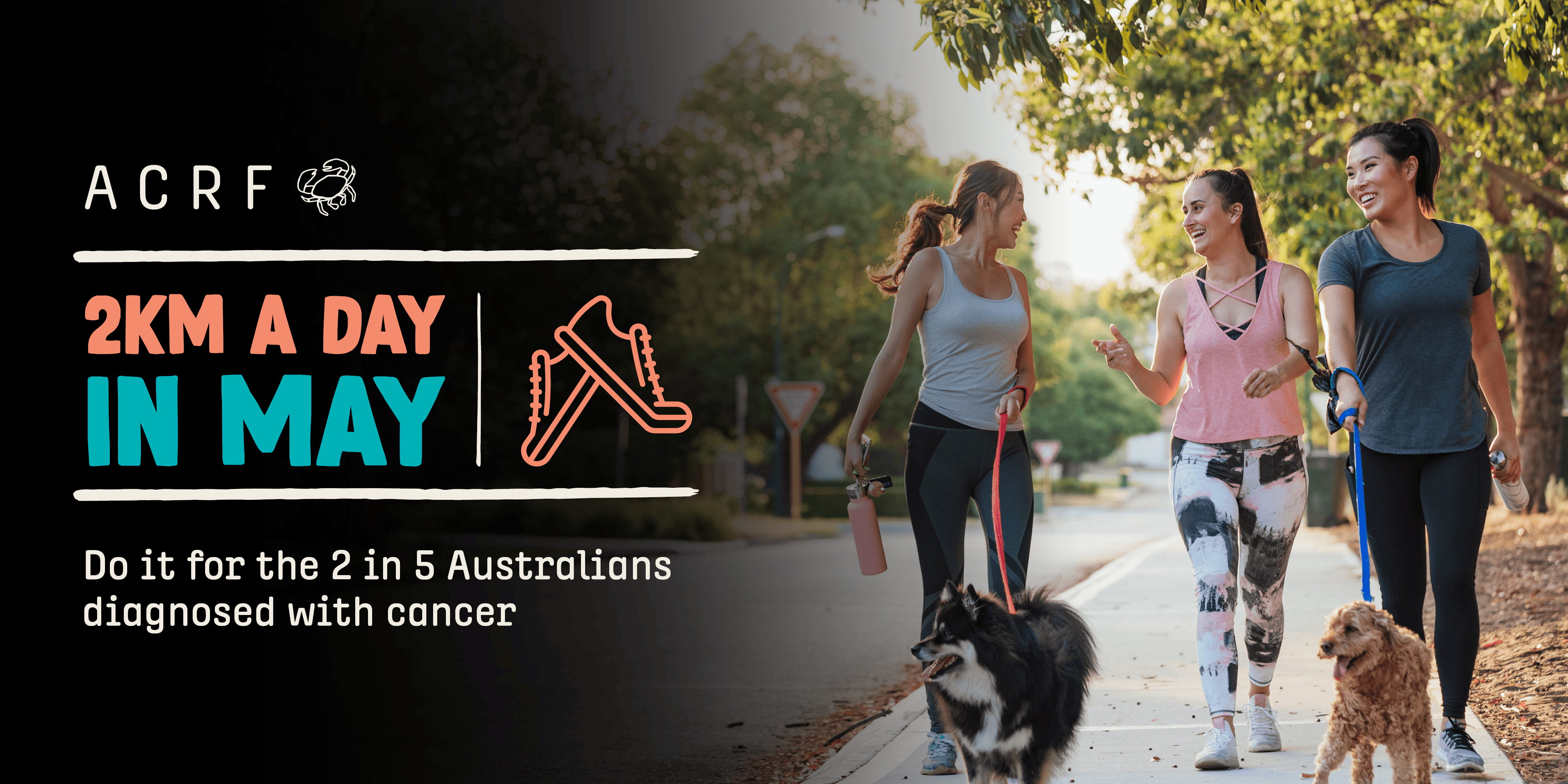 The challenge is simple: walk or run 2km each day in May (perhaps with mates or your dog), set up an ACRF donation page on Facebook and ask your friends to get behind a brilliant cause.