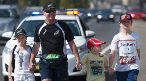 The streets along Blaxland were lined with family, friends and neighbours cheering David and his children on. Being a local police officer, David also received a police escort for the home stretch.