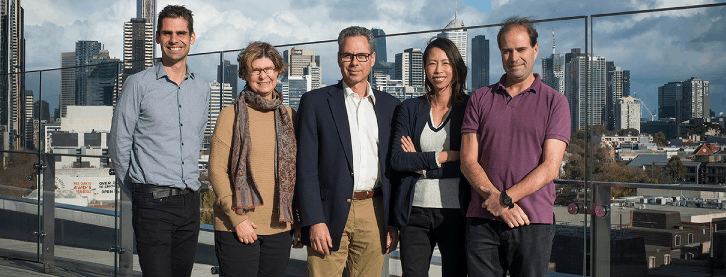 Image: Dr Daniel Gray, Professor Jane Visvader, Professor Geoff Lindeman, Associate Professor Sherene Loi and Associate Professor Phillip Darcy. Image courtesy of WEHI